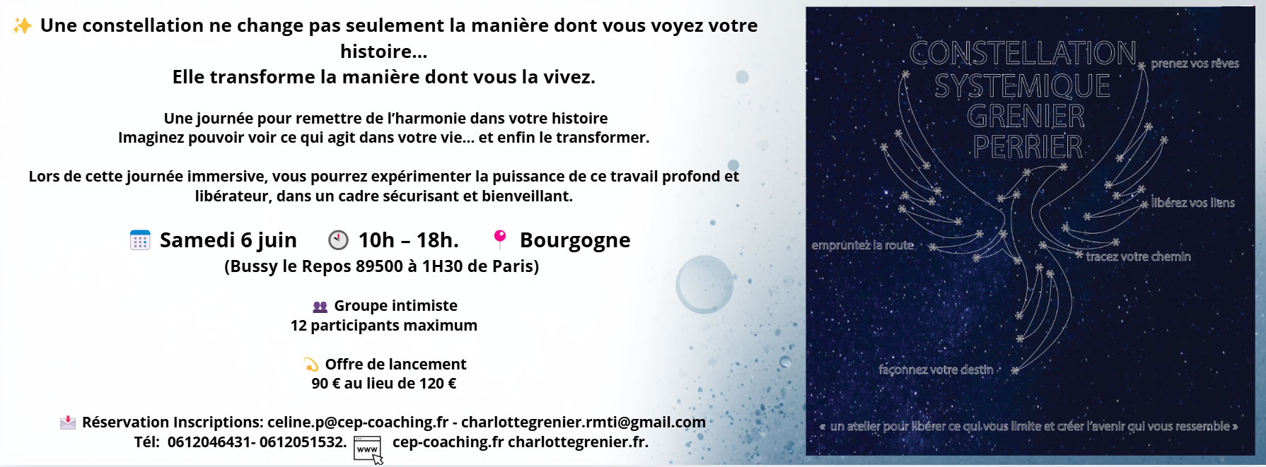 Pour mieux vous accompagner en Constellation Familiale et vous aider à savoir si cette approche vous correspond, je vous propose un entretien préliminaire gratuit de 20 minutes en visioconférence. N’hésitez pas à prendre rendez-vous via l’onglet prise de rdv!